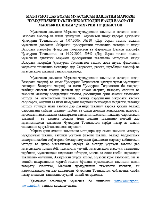 734024 ш.Душанбе, кӯчаи А.Дониш 50